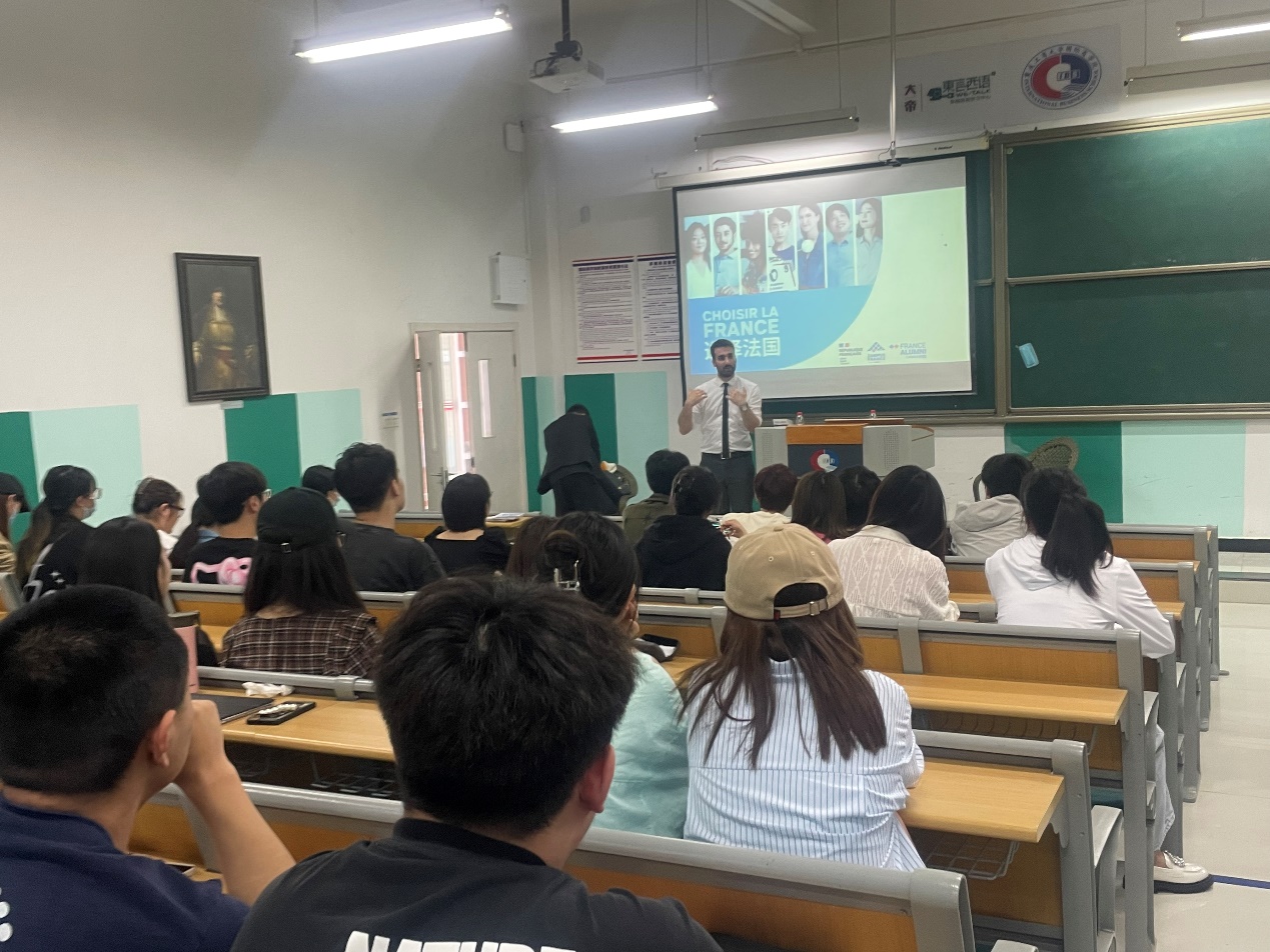 5月19日下午,法国高等教育署成都中心负责人李奥力先生和法国高等教育署成都中心宣传与推广项目官员林小石先生来访必赢242net官网,并为法语专业、中法2+2项目及工商大学外国语学院法语专业的同学们带来了关于法国高等教育的宣传说明会。说明会内容涉及法国高等教育优势、留学专业选择及法国高等教育署提供的免费支持。说明会期间,李奥力先生愉快地回答了同学们的提问。