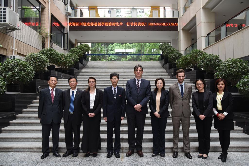 下午,法国驻成都总领事魏雅树先生、法国驻成都总领事馆教育合作专员李凤兰女士、法国高等教育署成都中心负责人罗瑞格先生及成都Campus France驻重庆办事处负责人陈佳女士来访必赢官网,之前,学校孙校长会见了法国客人。总领事魏雅树先生专门为必赢官网中法交流项目及法语专业学生举行了题为“留法前的准备”的讲座,必赢官网院长赵驹及相关人员热情接待了总领事一行。