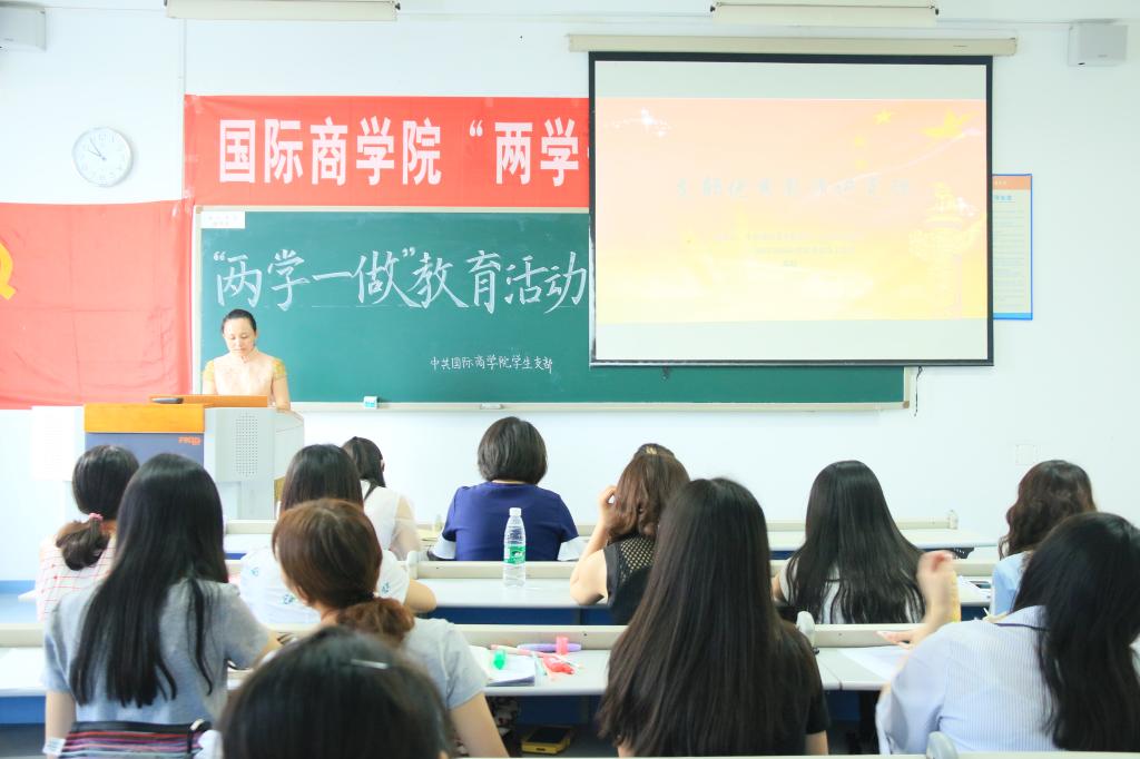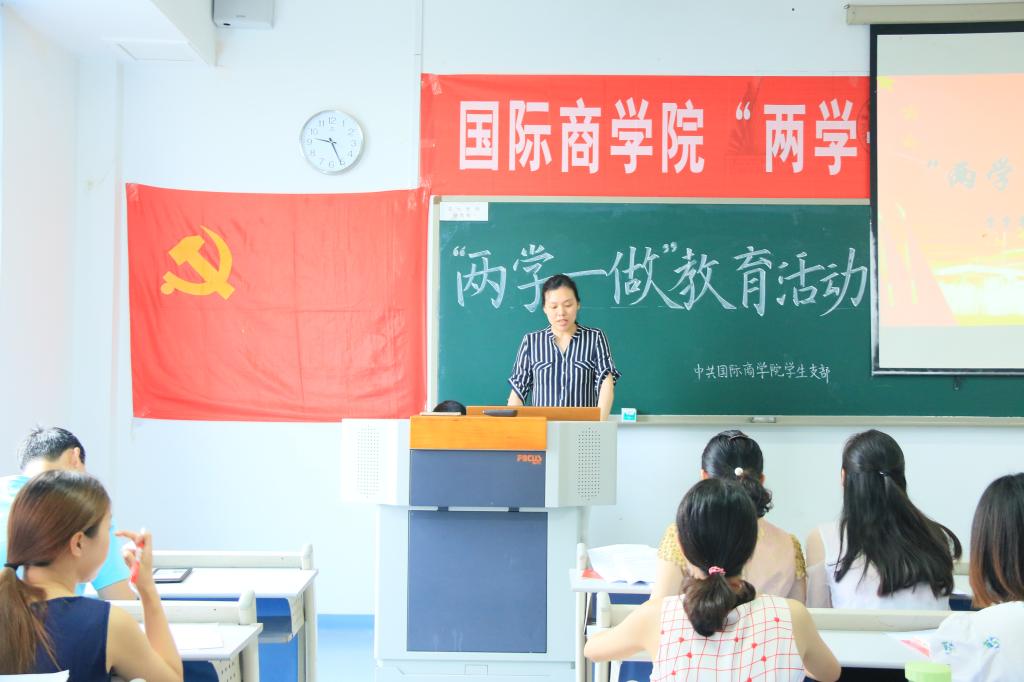 在“两学一做”集中教学环节,由学生二支部宣传委员高娟老师带领全体党员深入学习“两学一做”的内容,尤其是对党章党规进行分解式讲解并结合当代大学生党员的实际进行号召全体党员从自身做起,争做合格党员。