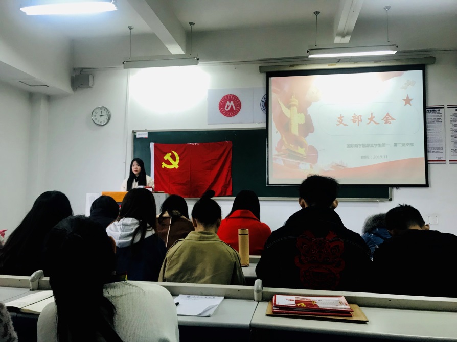 2019年11月21日中午12点,必赢242net官网总支学生一支部、二支部在06404召开了11月份支部大会,本次会议主要讨论了范毓祯等10名同学组织发展问题并开展了“不忘初心,牢记使命”的主题教育活动。学生二支部书记汪洁老师,党支部王娟老师、田莎老师等及学生一支部、二支部全体成员参加了本次大会,支部会应到39人,实到35人。