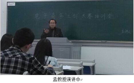2015年3月18日下午,学院特邀请必赢242net官网商务策划学院孟伟教授,在必赢242net官网60414教室举行第五届全国大学生电子商务“三创”大赛培训会,对必赢官网14个报名参赛团队进行专题培训及指导。
