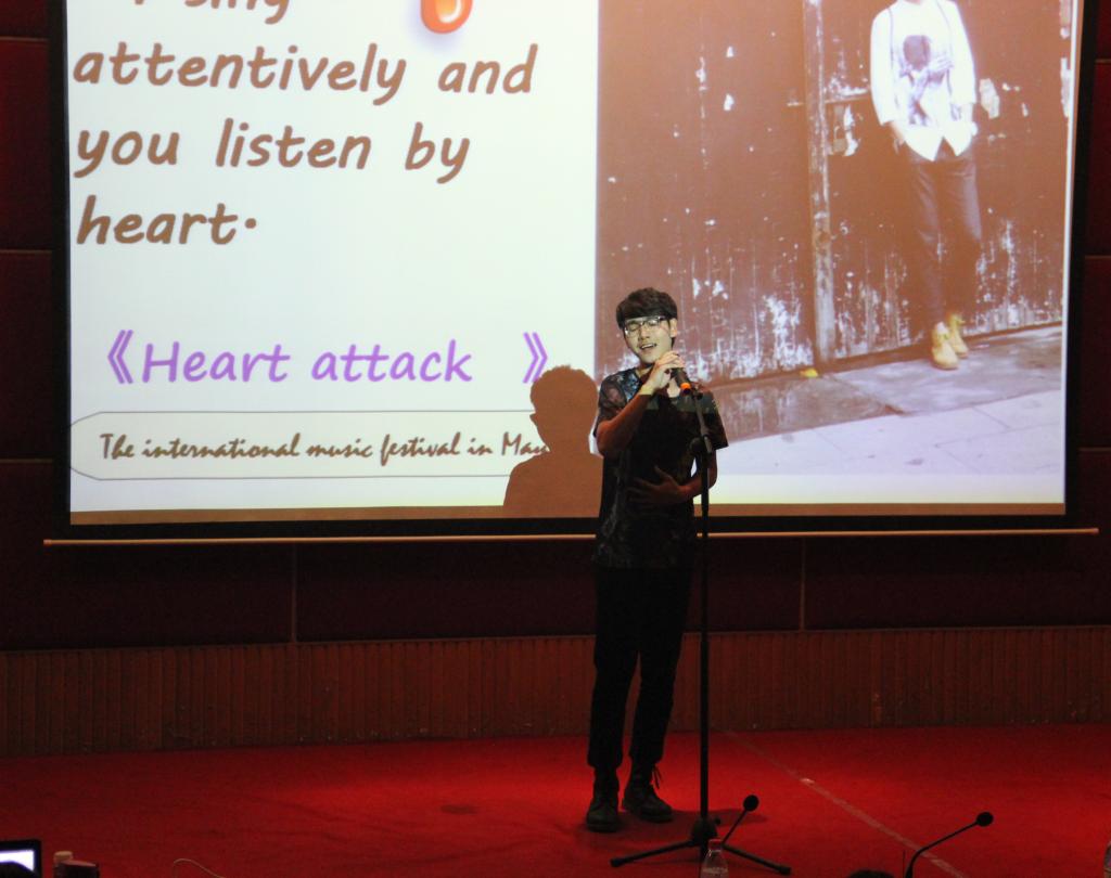 2015年5月24日晚上18:00,由必赢官网学生会文艺部承办的“五月外语音乐节”决赛于必赢官网7200阶梯会议室成功举办,本次决赛邀请到必赢官网第十三届十佳歌手的十强选手李源同学、2013年五月外语音乐节的冠军左思宇同学、2014年五月外语音乐节最佳口语奖获得者叶茂同学以及2014年第十三届校园十佳歌手冠军、五月外语音乐节冠军李彦瑾同学担任评委。