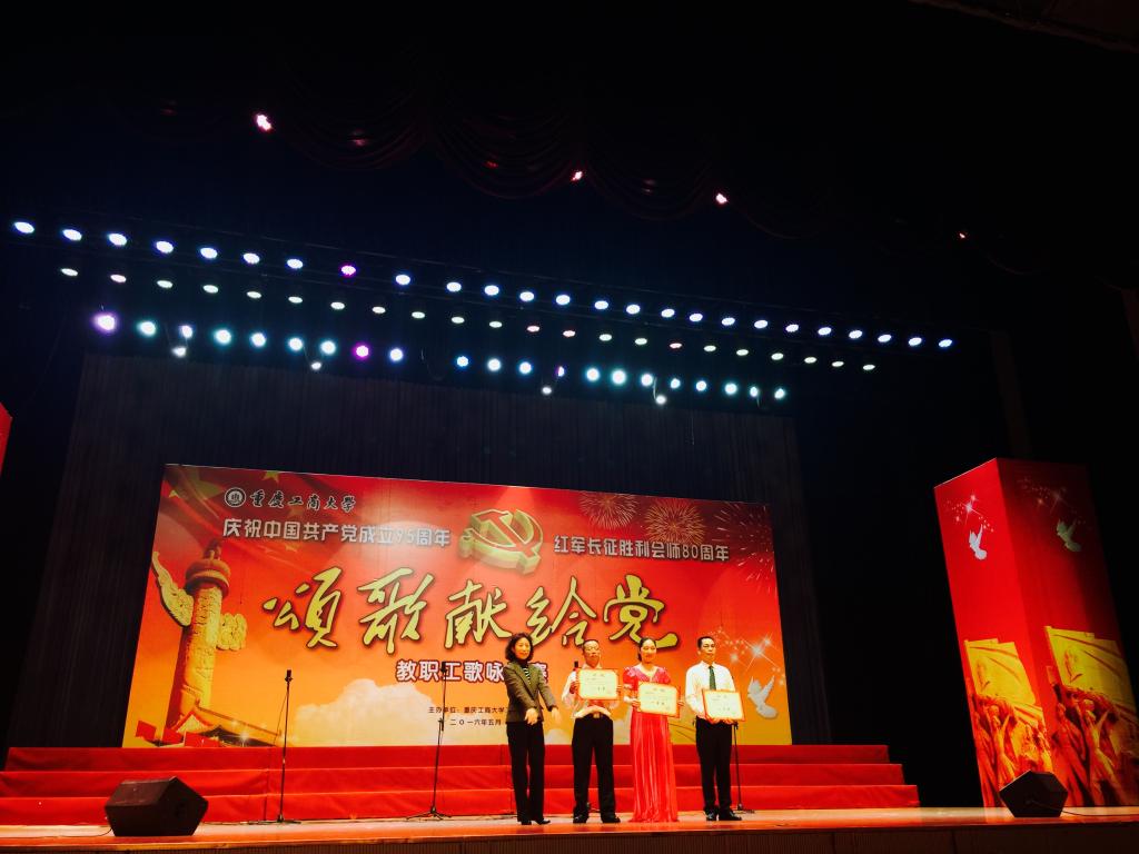 2016年5月27日下午2点,必赢242net官网“送歌献给党”教职工歌咏比赛在体艺馆隆重举行,由各个学院的教职工代表团参赛,颂扬党的精神。必赢官网教职工代表队以团队配合的精神和对音乐的独特理解,完美诠释了一曲《没有共产党就没有新中国》,荣获一等奖。