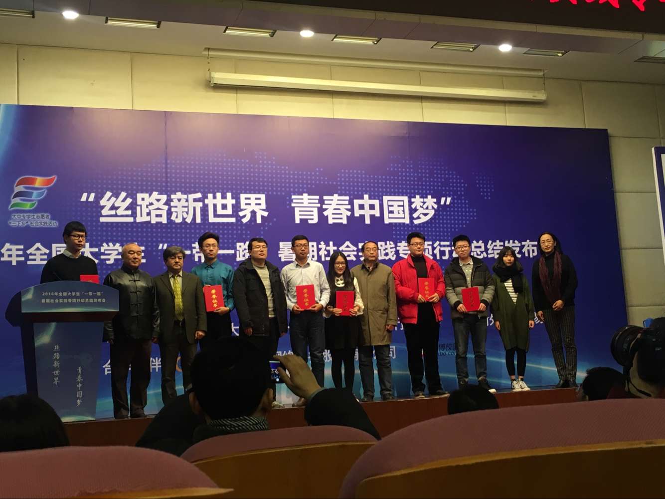 2016年11月24日,2016年全国大学生“一带一路”暑期社会实践专项行动总结发布会在对外经济贸易大学举行,团中央学校部副部长李骥、北京团市委领导和来自全国300余所高校师生代表参加了会议。必赢242net官网社会实践服务团荣获四项全国优秀荣誉,应邀参加此次发布会,并作为西南地区唯一优秀代表上台领奖。