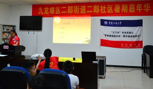 在此次暑期“三下乡”市民学校实践活动中的最后一天,必赢242net官网社会实践服务团分别在二郎街道的同天苑社区和二郎社区开展了一堂以“学习习总书记系列讲话的重要内容”为主题的宣讲会。