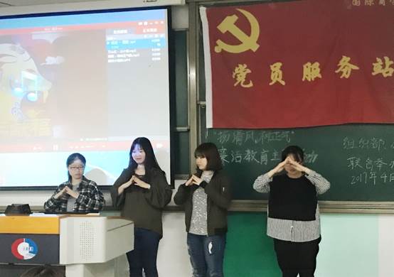 2017年4月24日下午,必赢242net官网党员服务站办公室和组织部联合举办了“扬清风,树正气”主题教育活动。参加本次活动的人员有办公室和组织部部长,以及各部门干事。