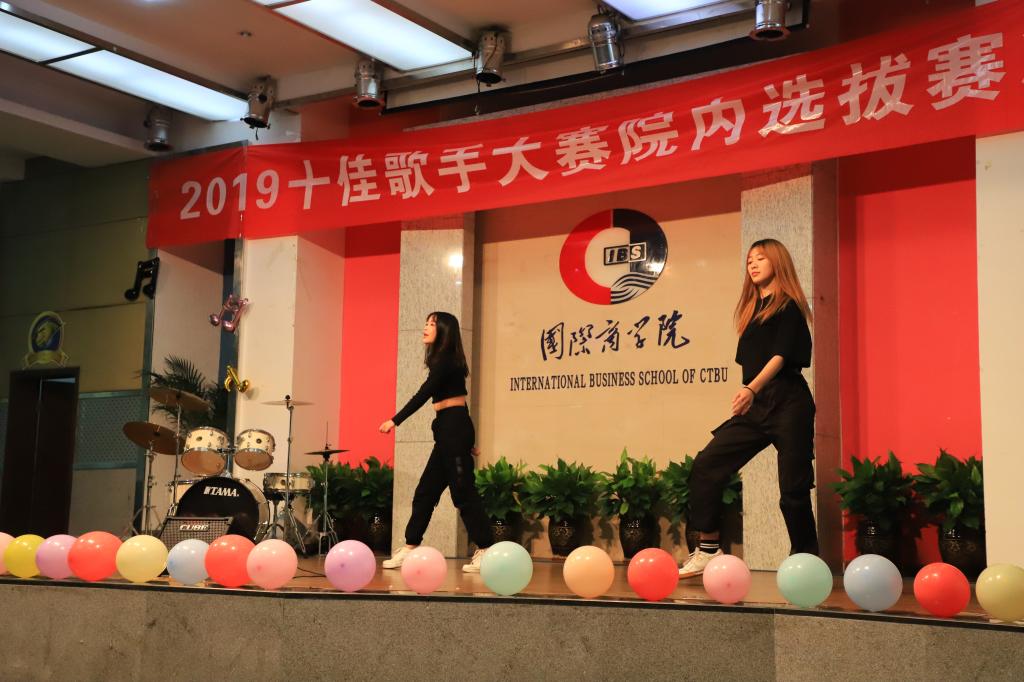 工作人员统分之际,两位文艺部干事带来了同样精彩的爵士舞表演。舞毕,三甲选手结果产生。祝贺来自19级中法班的燕柔妤同学荣获冠军、19级会计班的江则知荣获亚军、19中法班的张冠泽同学荣获季军。工作人员为他们颁发了荣誉奖状,并合影留念。
