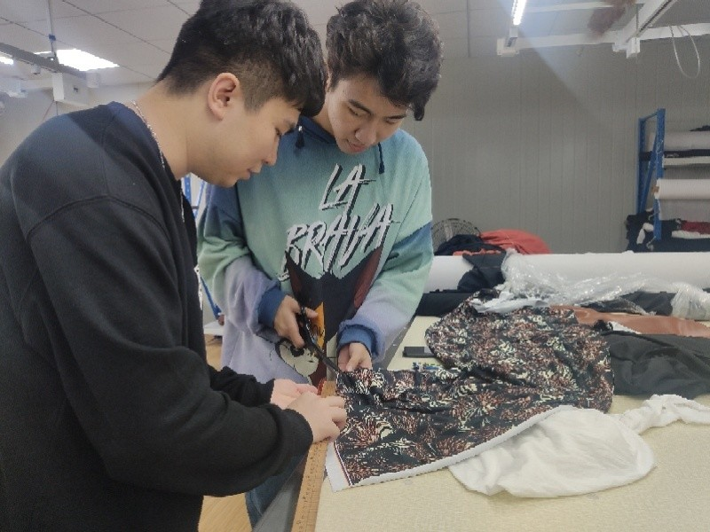 国贸学生代表团于2020年10月18日上午到达后,首先跟随校友来到会议厅,公司工作人员表示了热烈的欢迎并且向大家介绍企业的成长经历,管理经验,公司理念以及未来规划,还分享了当下的世界市场,同学们结合自身所学专业知识积极参与讨论。随后,在工作人员的带领下,同学们来到了生产车间,进行参观与实践体验。从一枚细小的纽扣的制作,再到一针一线的缝纫技术,在老师的细心指导下,学生们从起初的不协调,变得得心应手起来。在这个过程中,让学生不仅体会到了生产车间工人的不易,做服装所需的细心,更是切身体会“实践出真知”,充分了解行业的各个阶层领域才能更好的做出相关判断与思考。