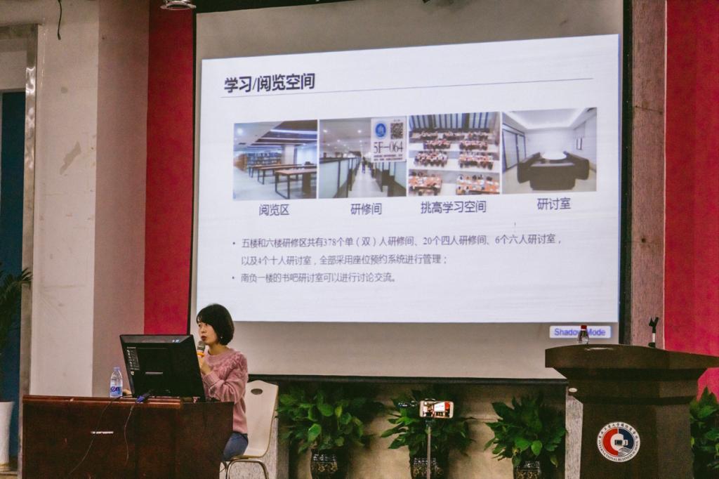 本次讲座围绕“图书馆概况、资源、服务和翠湖文化系列活动”四个主题展开。肖老师为同学们介绍了南岸校区图书馆(以下简称“主馆”)的概况,她用图文结合的形式向同学们展现了主馆大气磅礴的外观和形式多样的空间资源;为同学们介绍了主馆的纸本资源和数字资源,并讲解了这两种资源的查询方法;对主馆的服务展开讲解,其中着重介绍了开馆时间和图书的借阅流程。最后肖老师向同学们展示了丰富多彩的翠湖文化系列活动,引起了同学们浓厚的学习兴趣。讲座现场气氛活跃,同学们热情度极高。