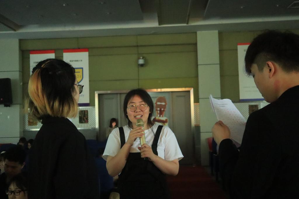 在表演结束之后,主持人也对观众们进行提问,询问他们对于这次心理剧的感受和意见,同学们也各抒己见,发表了对于表演的赞美和感受。评委们也对于表演的参赛选手们发表了专业详细的点评,并且为选手们打分。