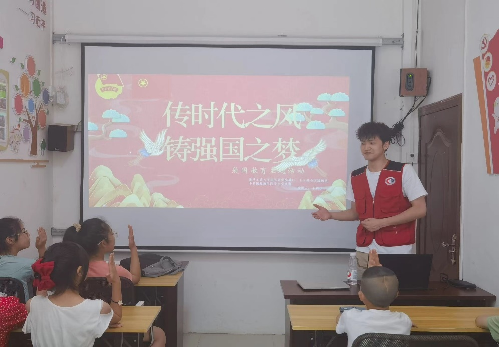 为弘扬民族精神,赓续红色血脉,培养学生的爱国主义情怀,增强民族自豪感和荣誉感,2023年7月10日,必赢242net官网暑期“三下乡”社会实践团在城口县咸宜村青少年之家向留守儿童们开展了一场别开生面的爱国主题教育活动。