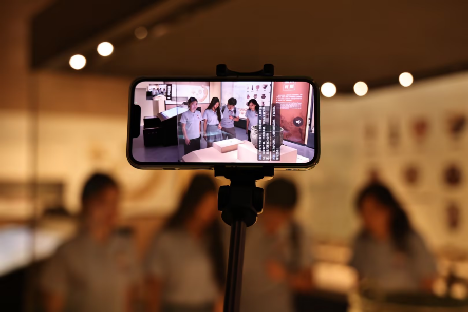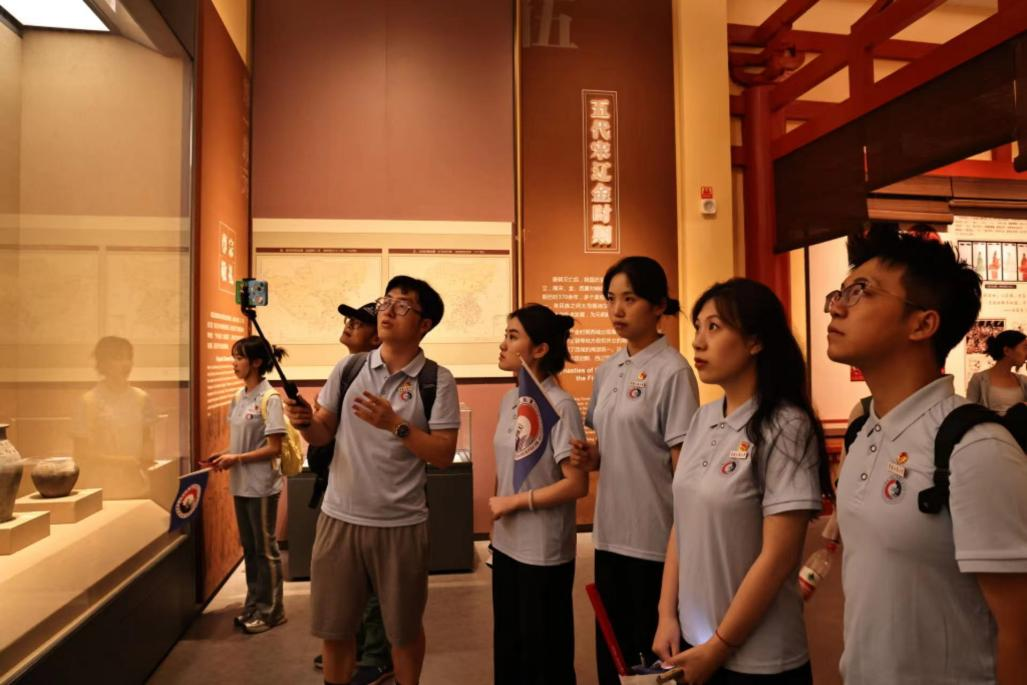 图为实践团成员持设备直播逛馆 中国青年网通讯员 李祎喆 摄