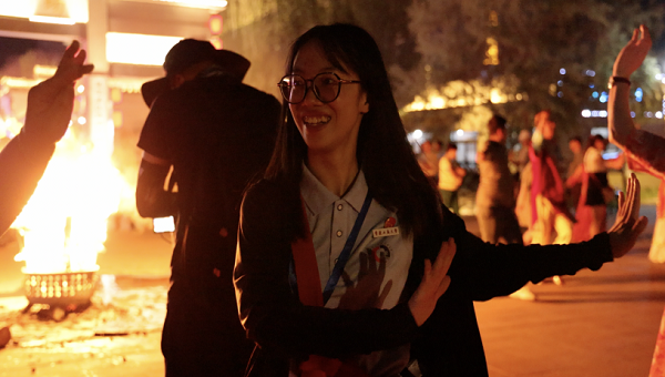 实践团成员参与篝火晚会舞蹈