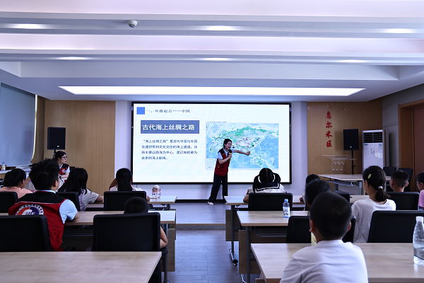 丝路小课堂以当代国情“一带一路”倡议为切入点,向孩子们介绍古代丝绸之路的文化和历史背景,古今交融,让孩子们对话历史,感悟文化,树立文化自信,让文化融通心灵。此外,实践团成员还讲解了沿线国家的风土人情、传统艺术以及与中西文化交流的历史事件,致力于让孩子们对世界多元文化有更深入的了解。同时,成员们通过互动游戏、趣味问答等形式激发孩子们的学习兴趣,培养他们的创造力和团队合作精神。
