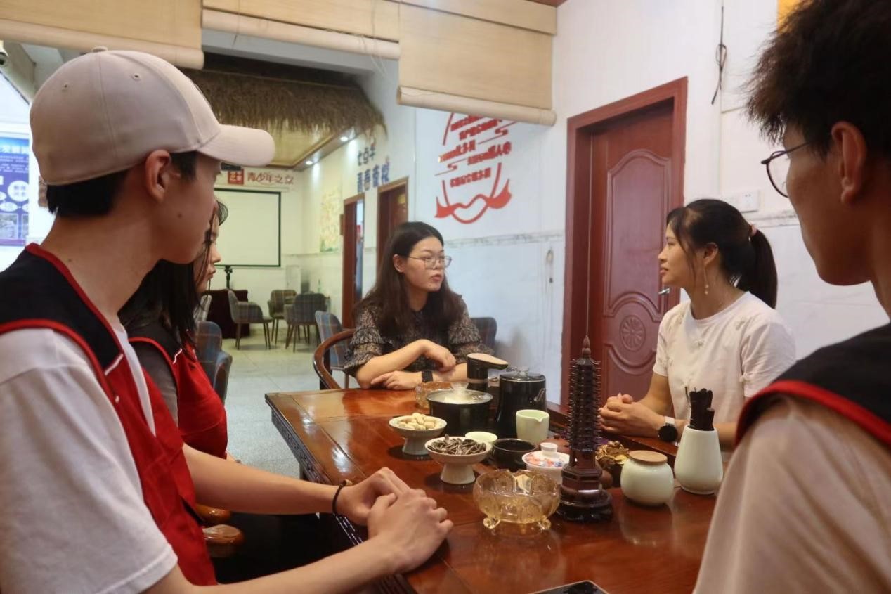 实践团成员先后参观了咸宜镇电子商务公共运营服务中心、咸宜直播基地,青村茶社等地,了解到当地农业发展、村民致富工程与青年人才返乡创业历程,给实践团全体成员上了一堂与现实相结合的“大思政课”。之后,实践团队拜访了青年人才返乡创业的优秀代表——滕世辉,参观了其经营的山地黑鸡养殖基地。青年大学生返乡创业,给自己在基层的实践中施展才华提供了一方天地,同时助力发展乡村产业。通过实地调研、现场交流,团队成员们对实现“农业强、农村美、农民富”有了更直观的感受。