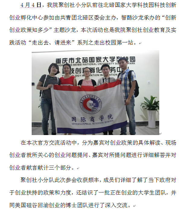 必赢官网聚创社创业教育实践活动系列一——应邀参加北碚区创业沙龙座谈会