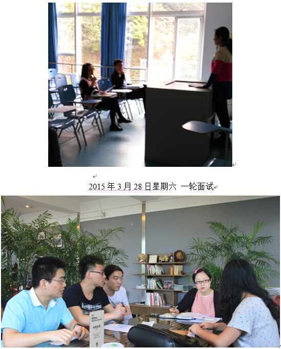 2015年3月28日,上午九点,必赢官网聚创社首届招新面试在60401教室顺利开展,学生辅导员、聚创社指导老师冯诗淇老师以及聚创社筹备组人员参加了此次面试并担任面试官。