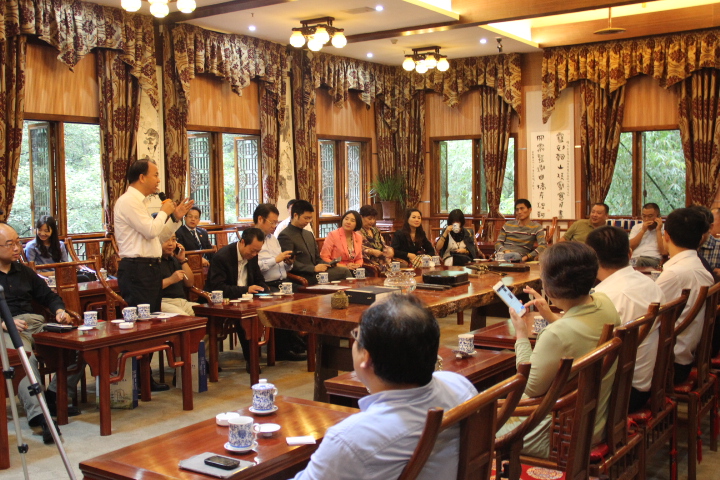 大会共四项议程,在赵院长热情洋溢的讲话和对各专家的介绍后,党总支副书记黄谦宣读了校外专家委员会章程(草案),该草案确立了委员会的基本框架,明确了委员会的职能、权责等事项。随后,潘和平教授为各位委员一一颁发了聘书并邀请多位委员讲话。最后大会顺利结束。在合影留念后,赵院长陪同各位专家一同前往了南山书院。在青山秀水间,在书香茶韵中,专家们深入交流了有关委员会的重点项目,合作方向等关键问题,为今后学院的建设发展献言献策。