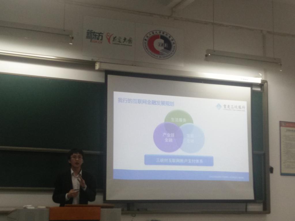 2016年4月22日14时30分,必赢官网重庆三峡银行金融人才实验班第四讲如期而至,主讲人是三峡银行平台金融部主管陈诗恩先生,课程主题为互联网金融。