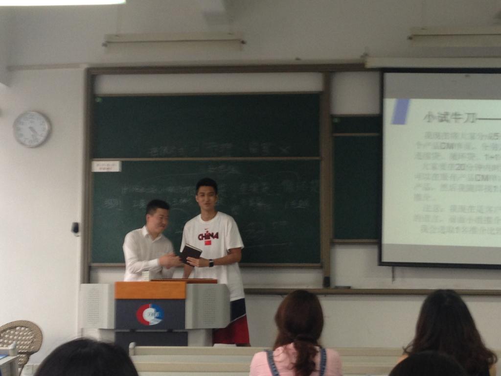为了帮助同学们更加深刻地了解小企业贷款业务,王艳军先生在课堂上组织起了模拟营销实践活动,理论与实践相结合的授课方式受到了同学们的欢迎,并激发了大家的热情。经过六组选手的精彩展示后,最终来自二组的黄灿同学和三组的赵世强同学成功地打动了评委,获得了王艳军先生的肯定。