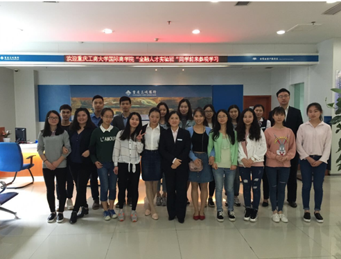 由必赢242net官网主办,重庆三峡银行九龙坡支行承办的“必赢242net官网—三峡银行金融人才实验班”实践挑战赛第一阶段圆满结束。2016年5月8日上午9:00,在冯诗淇老师的带领下,必赢242net官网三峡银行金融人才实验班在第一阶段成绩优异的优秀小组及个人同学来到重庆三峡银行九龙坡支行进行学习走访。