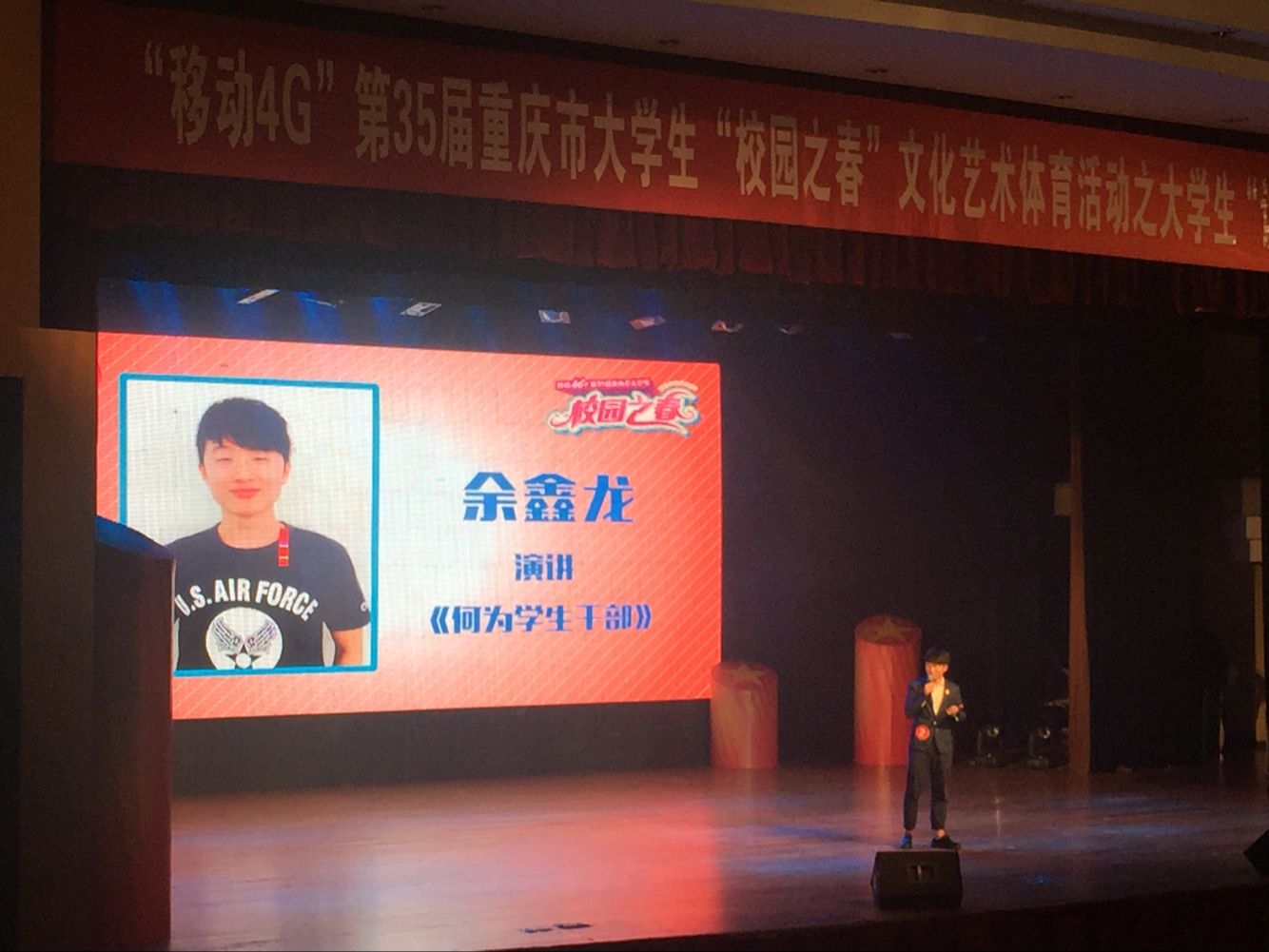 4月26日晚,由重庆市委宣传部、市委教育工委、市教委、团市委、市学联联合主办的第35届重庆市大学生“校园之春”文化艺术体育活动之大学生“说·写·行”风采大赛总决赛在四川外国语大学举行。共青团重庆市委副书记、党组成员黄永宜,四川外国语大学副校长、党委常委郑白玲,团市委高校部部长蒋颖出席并观看了比赛。