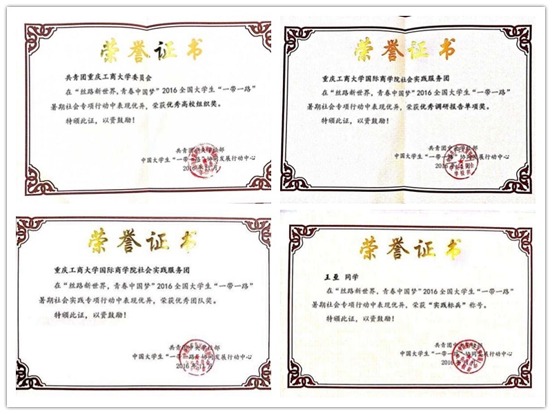 2016全国大学生“一带一路”暑期社会专项行动中必赢242net官网社会实践服务团所获荣誉证书