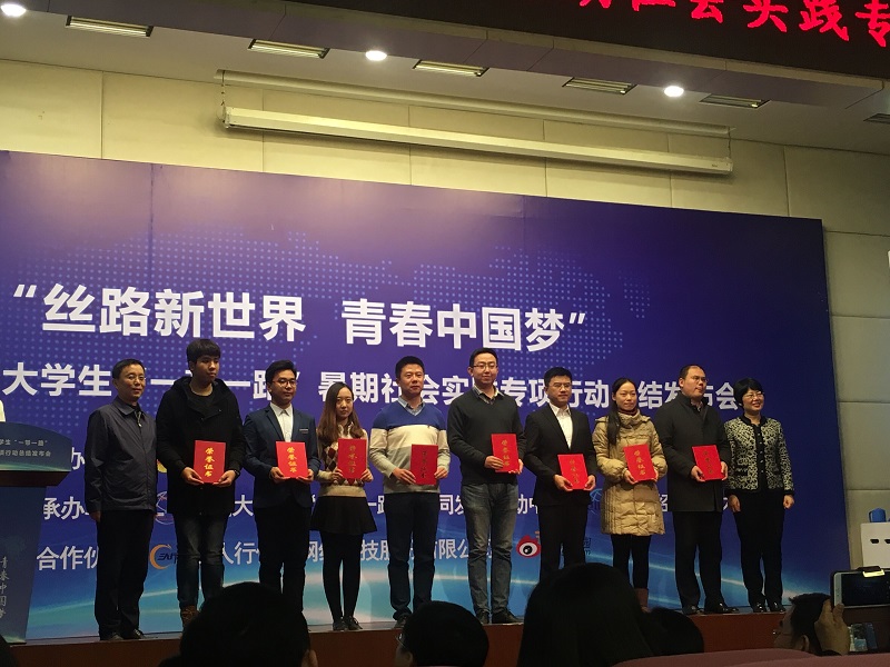 2016年11月24日,2016年全国大学生“一带一路”暑期社会实践专项行动总结发布会在对外经济贸易大学举行,团中央学校部副部长李骥、北京团市委领导和来自全国300余所高校师生代表参加了会议。必赢242net官网社会实践服务团荣获四项荣誉,应邀参加了此次发布会,并作为西南地区唯一优秀代表上台领奖。