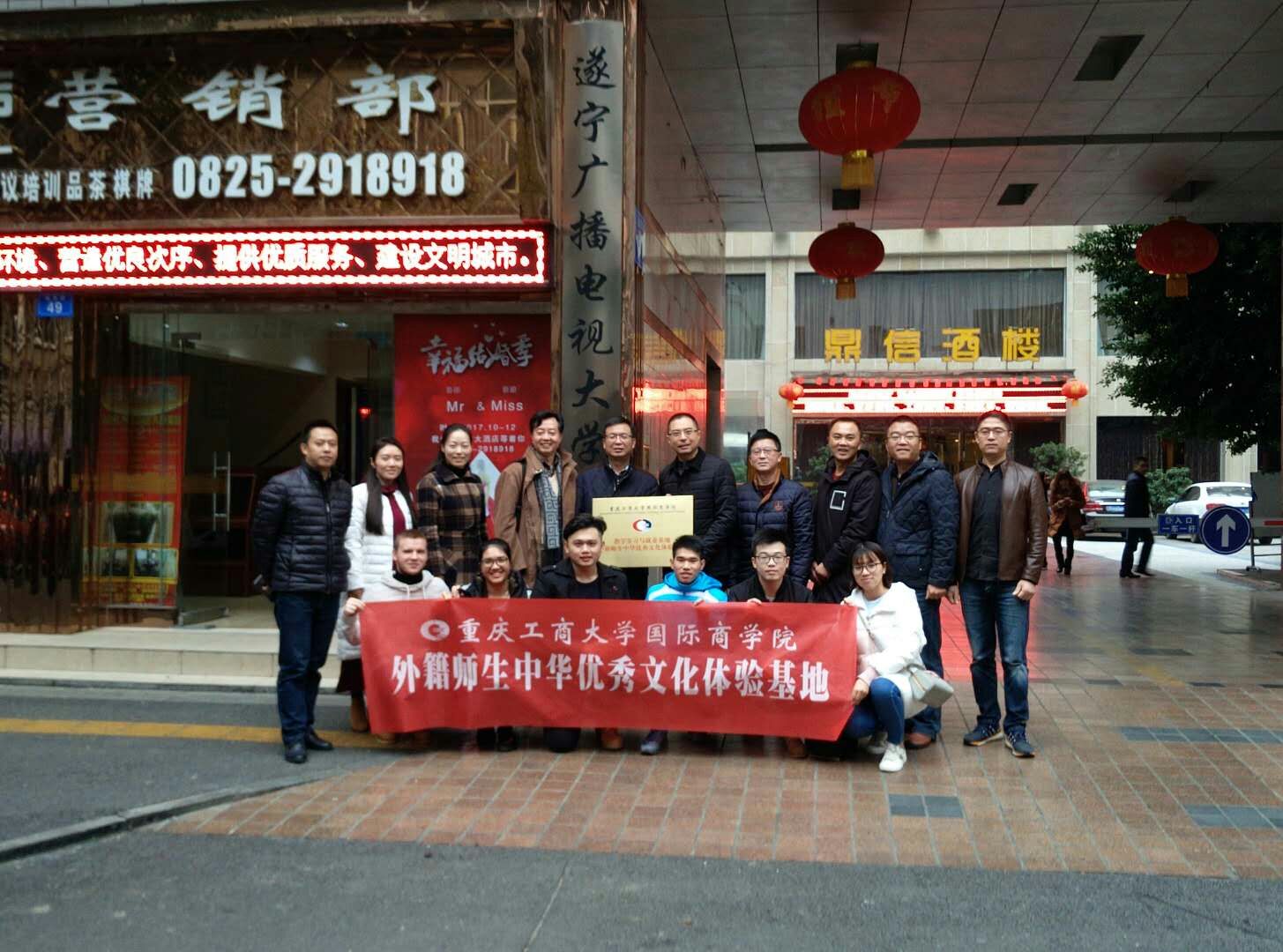 2017年12月7-8日,必赢242net官网与遂宁广播电视大学共建的“教学实习与就业基地”授牌仪式暨外籍师生中华优秀文化体验活动在遂宁成功举行。必赢官网党总支书记兼院长赵驹、院长助理庞卫真、院办公室主任杨波、教学部部长苟焰及来自越南、马来西亚、哈萨克斯坦等国4名留学生以及2名国内学生干部参加了本次活动。