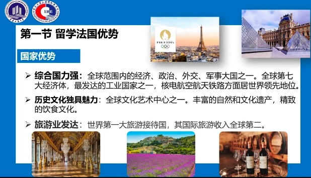 接着,中加项目和中法项目负责人分别就外方合作大学基本情况、项目具体培养要求、外方学习专业和生活费用、项目就读优势和就业前景等为各位学生和家长进行了详尽的介绍。
