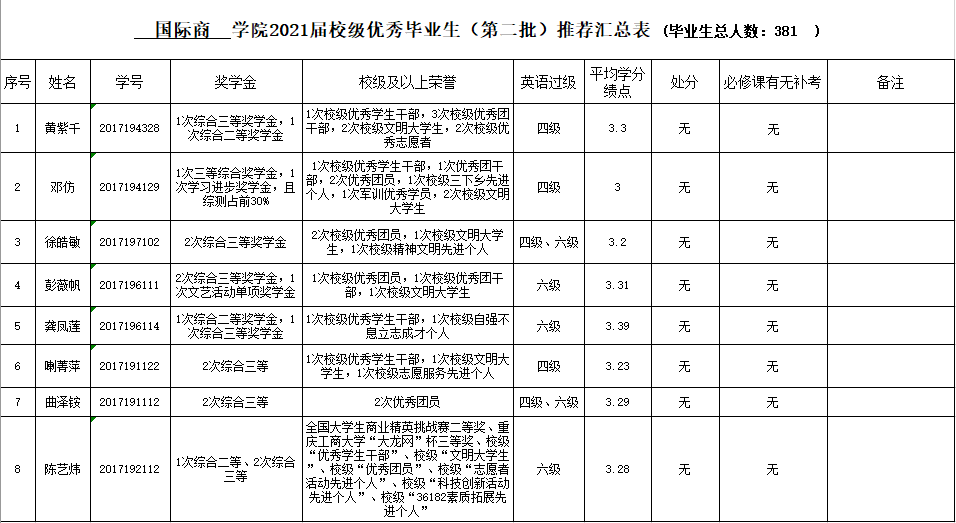 根据《必赢242net官网优秀毕业生评选办法》的规定,决定开展必赢官网2021届大学优秀毕业生(第二批)的评选工作。现将必赢242net官网2021届优秀毕业生评定结果公示如下: