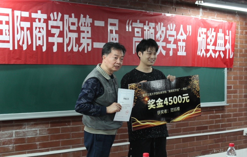 典礼开始,首先由庞卫真老师对本次活动进行讲话致辞。庞老师表达了对获奖学生的祝贺和肯定;他指出,参加财会证书学习课程是对人生的一笔投资,希望在座同学能对自己的人生有所规划。最后,庞老师表示了对该项目未来发展的希冀,期待必赢官网涌现更多人才。紧接着,颁奖环节正式开始,必赢官网领导为本次获奖的同学依次颁奖。19级会计二班陈卓同学、19级人资王姝瑶同学、19级工管一班刘静怡同学荣获三等奖; 19级会计二彭燕妮同学、19级会计一班胡馨月同学荣获二等奖;来自19级国贸一班的范钰楼同学荣获一等奖。随后,范钰楼同学发表了获奖感言,他讲述了在这段学习时间里的种种收获和面对不同困难的解决方法,用自己的经历为其他同学提供了可学习的经验和莫大的鼓励。最后,高顿教育重庆分校校长刘红飞致辞。刘校长对必赢官网学生的优异表现给予了肯定与赞扬,他表示,本项目旨在提高学生的综合能力,对学生未来发展趋势进行科学规划,希望该项目未来能帮助培养更多优秀的国商学子。
