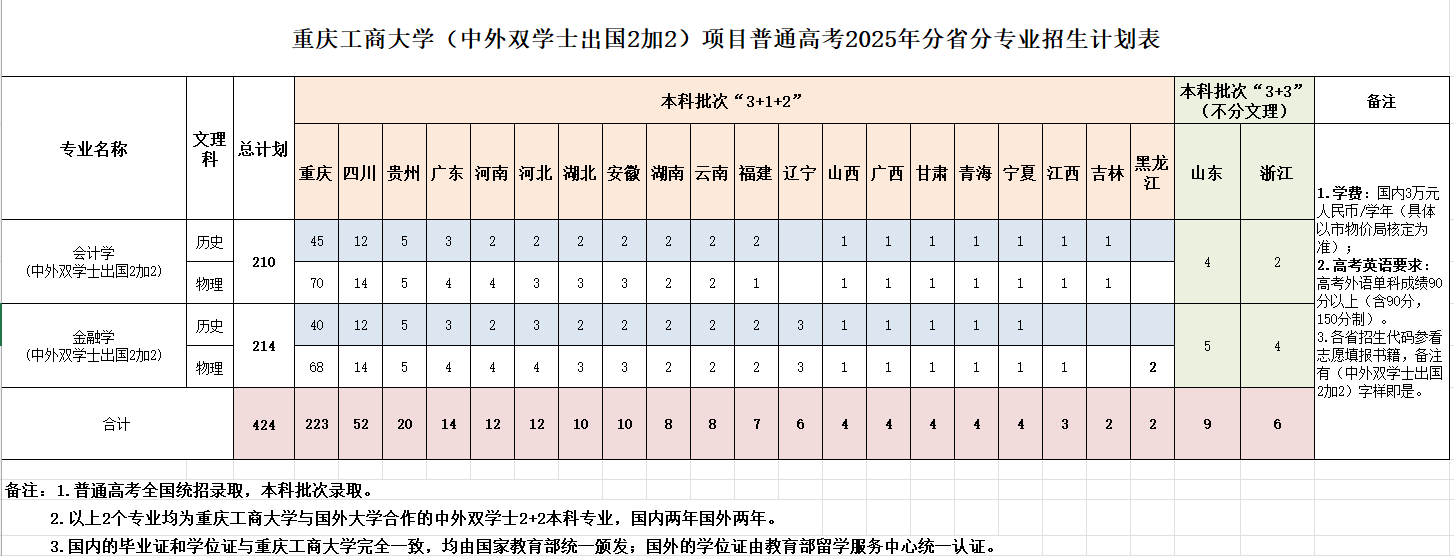 必赢242net官网(中外双学士出国2加2)项目普通高考2025年分省分专业招生计划表