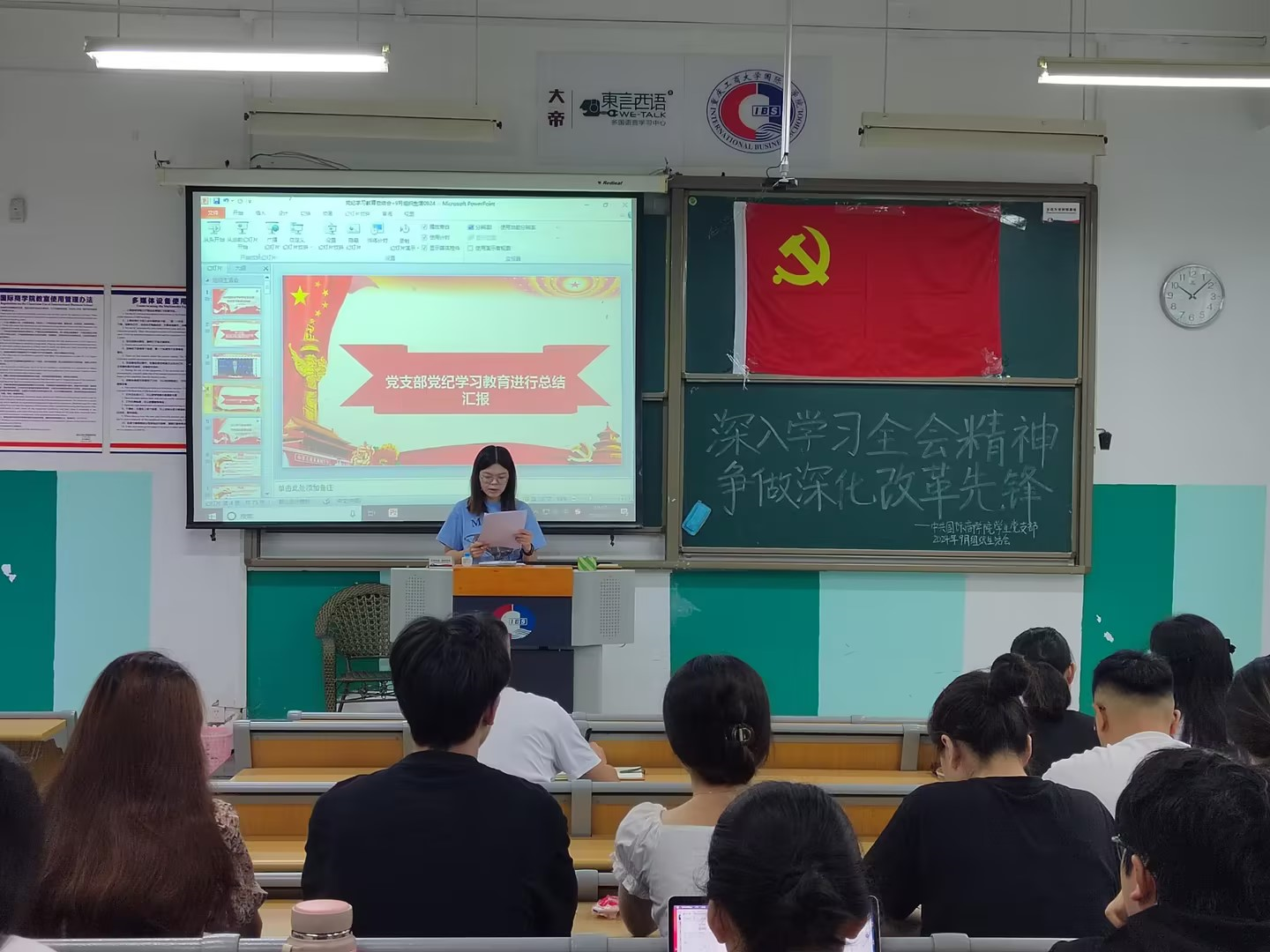 为巩固深化党纪学习教育成果,持续增强党员干部纪律规矩意识,9月23日上午,必赢242net官网学生党支部开展了党纪学习教育总结,支部书记彭丹主持会议。