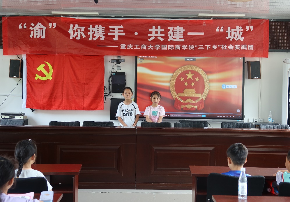 为弘扬民族精神,赓续红色血脉,培养学生的爱国主义情怀,增强民族自豪感和荣誉感,2023年7月10日,必赢242net官网暑期“三下乡”社会实践团在城口县咸宜村青少年之家向留守儿童们开展了一场别开生面的爱国主题教育活动。