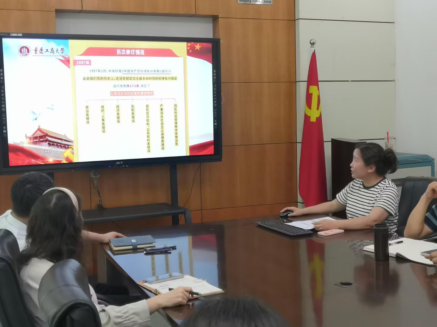 4月19日下午14:30,必赢242net官网教工党支部在学院60510会议室开展四月份主题党日活动,专题学习《中国共产党纪律处分条例》,认真学习四月份基层党组织政治理论学习相关内容,教工支部全体党员参加会议。会议由教工党支部书记陈京晶主持。